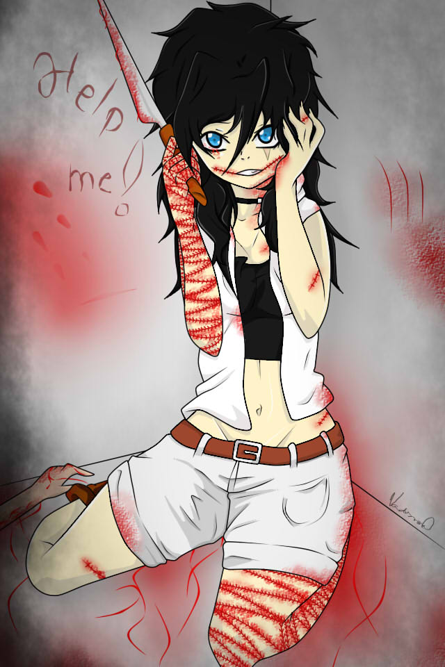 Alex sa nebála bolo jej jedno čo jej spravia ale nedovoli aby sa stalo niečo Michaelovi. Neskôr keď Mia položila Alex na kolená. Medzi ne priviedol chlapec jej brata. Alex chytil strach. $To nie! Čo ak mu dačo spravia! Pomyslela si a slzy jej pomaly tiekli. Začala sa triasť. Mia prišla k Michaelovi a položila mu nôž pod krk. Alex sa naštvala a rovno ju stihla od neho ďalej. Vzala si nôž a pred zrakmi všetkých si rezala pravú ruku. Miu schmatla za vlasy a hodila ju o stenu. Prišla k nej, kľakla si k nej a ruku plnou krvi optrela o jej tvár. Učitelia pribehli a okamžite ju odtiahli. Hneď potom šla na ošetrovňu. Škola zavolala do školy Janet. Alex ako čakala si na ošetrovni šila rány na ruke. Škola bola zhrozená s toho čo videla a nemohla tomu uveriť. "Dobrý deň... čo sa stalo?! Vystrašene sa spytala. "Dobrý pani Janet. Vy ste teta, Alex a Michaela, ak sa nemýlim. Usmial sa riaditeľ. Kývla hlavou. Nemohla uveriť tomu čo sa stalo. "Rezala sa pred zrakmi deti? Ustrášene a neveriaco sa tvárila. Hneď vedela že je niečo nedobre. Že to už nieje to milé a lákavé dievča. "Prepáčte za tu otázku ale s psychického hľadiska je v poriadku? Pozrela sa udivene na riaditeľa, nemala slov. "A- Ano. Pred pár dňami ju pustili s nemocnice a doktor povedal že je v poriadku. Odpovedala neisto. Hneď ako odchádzali zo školy si Alex obliekla mikinu, čím si krila ruku. Zahľadla obchod s kozmetikou. "Prosím... kúpila by si mi farbu na vlasy? Spytala sa a hneď nato prikývla. Janet čakala že si kúpi dáku veselú farbu ale pravdou bol opak. Kúpila si tmavú čiernu. Neskoro večer si ostriha a prefarbý vlasy. Neskôr vzala znova nôž, ihlu a niť. Prerezala si úsmev a hneď nato si ich zašila. Ráno keď mala ísť znova do školy si na seba obliekla kratase, čierne tielko a bielu kratku s vestu. Cestou aby nej nik nevidel do tváre, si dala kapucu.