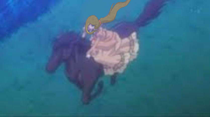 Kelpie sklamaný pozeral na vodu (svoj domov)... odrazu sa tam objavila Selkia Ermina.